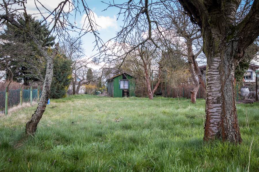 In kleinen Gärten: sonnig-kalt, überraschend in den An- und Durchsichten. So ein kleiner Osterspaziergang mit der Kamera bietet einiges. Und sehr zeitgeistig schwankt die Stimmung zwischen einerseits: verlassen, brach, aufgegeben, leer, kaputt … wie viele … Gärtner/innen. Aber andererseits auch: Frei-Flächen für Fantasien und Gesaltungen. In jede Richtig zu belästern und/oder zu verträumen. Schön eigentlich. Dieses Oster-Idyll in Schrebergärten. Die Kinderparadies, Ruhesitz, My-Hime-is-my-Castle, Ruine … zugleich sind. Und immer auch eine echte Herausforderung. Machen wir was draus! Spannende Locations zum Beispiel für spannende Shootings. Vielleicht gleich hier: gibt es immer mal freie Gärten 🙂